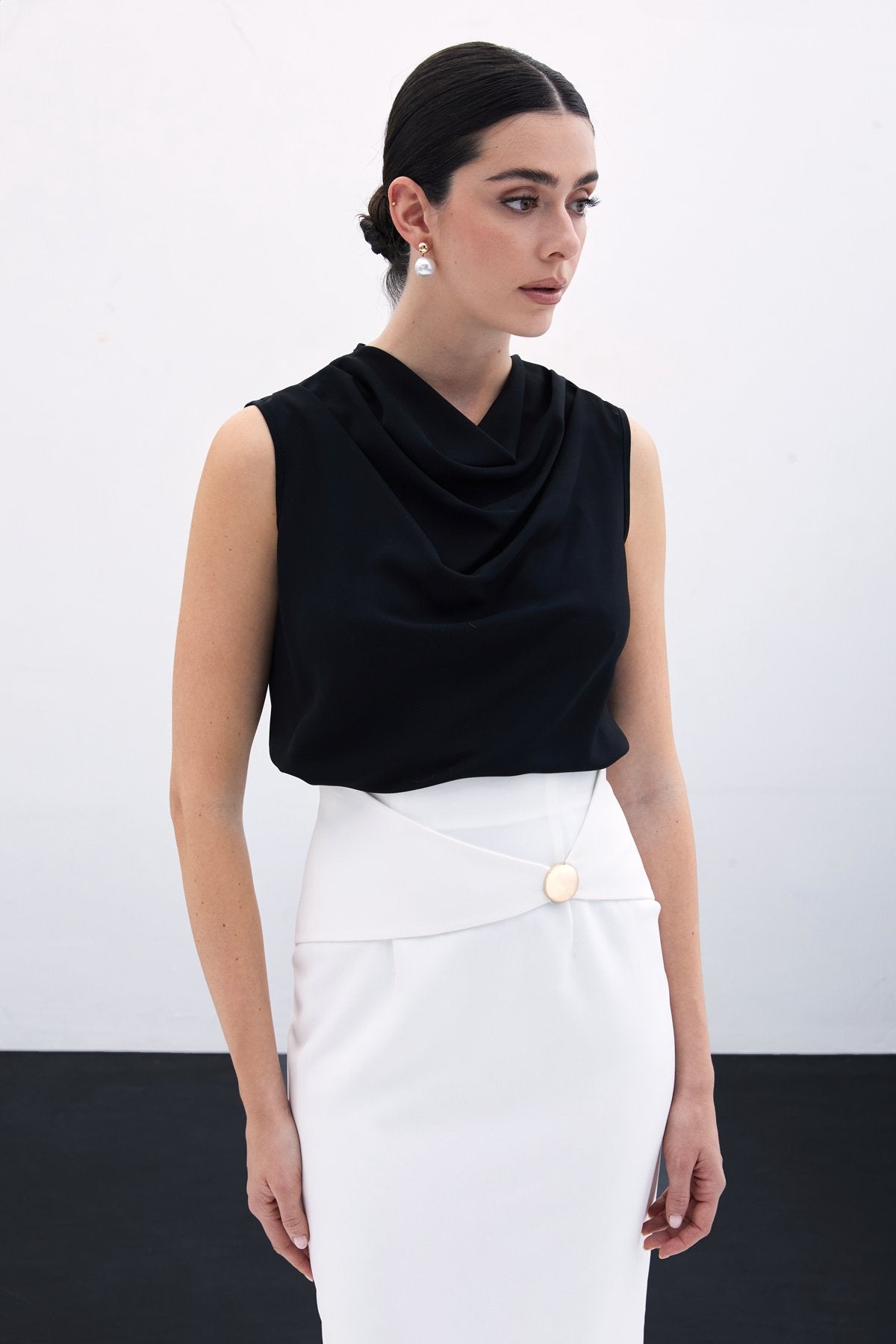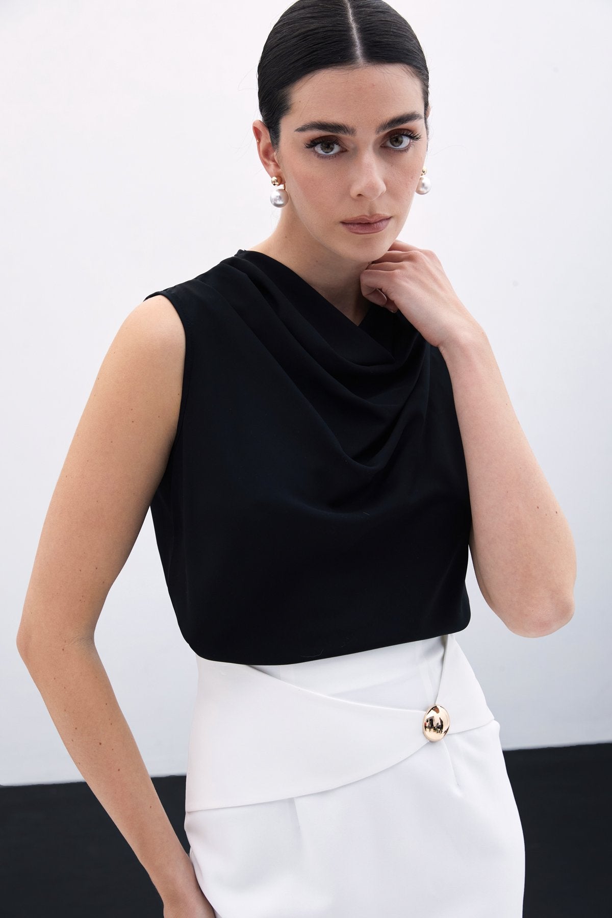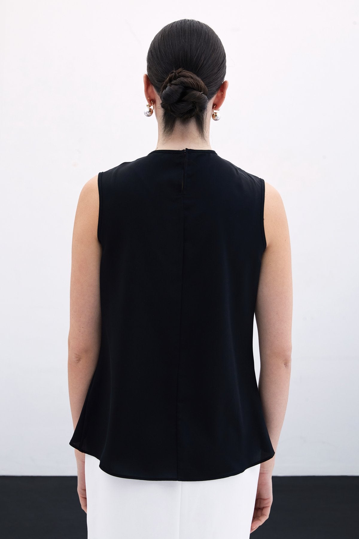 Degaje Yaka Kolsuz Bluz - Siyah