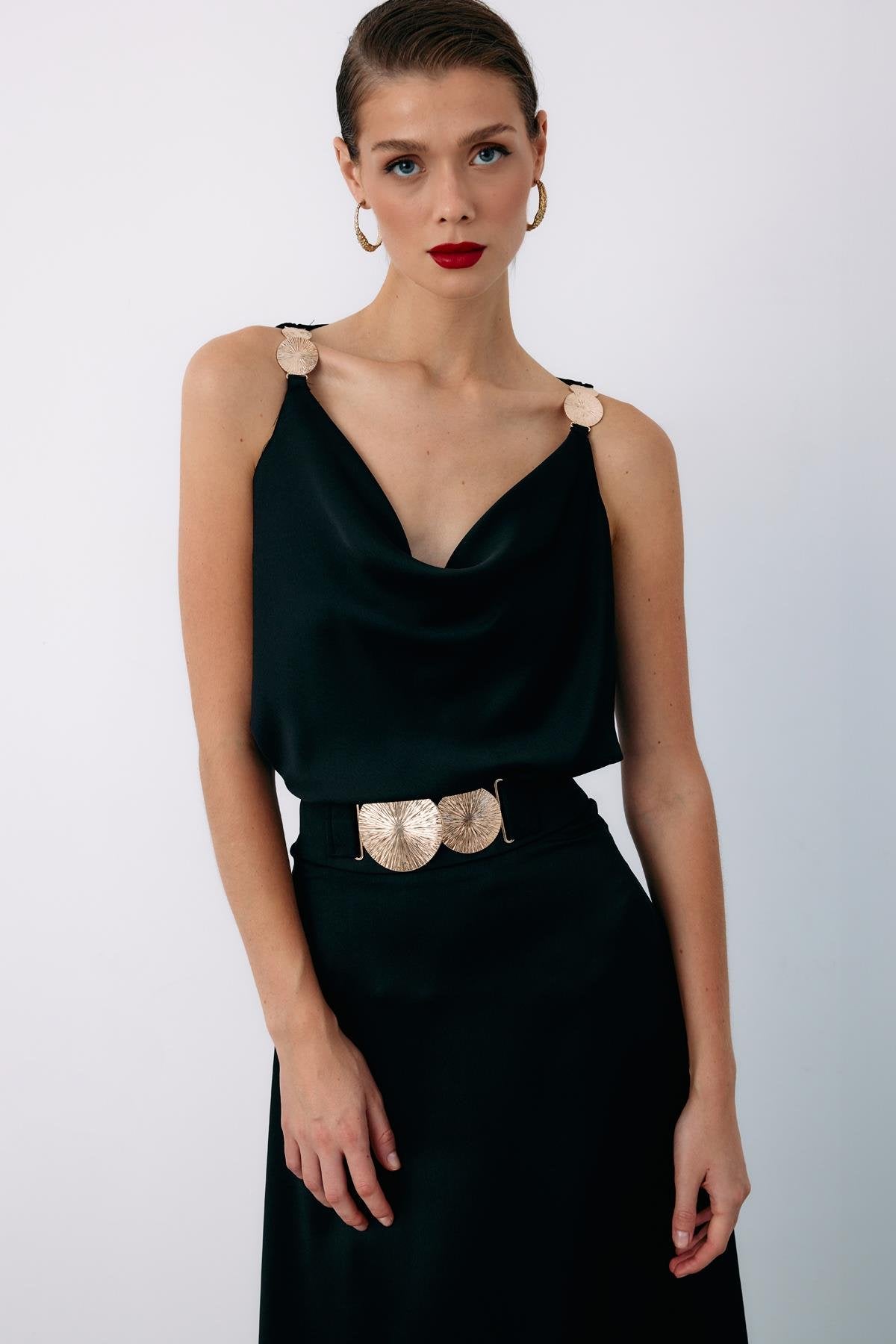 Omuz Aksesuarlı Salaş Bluz - Siyah