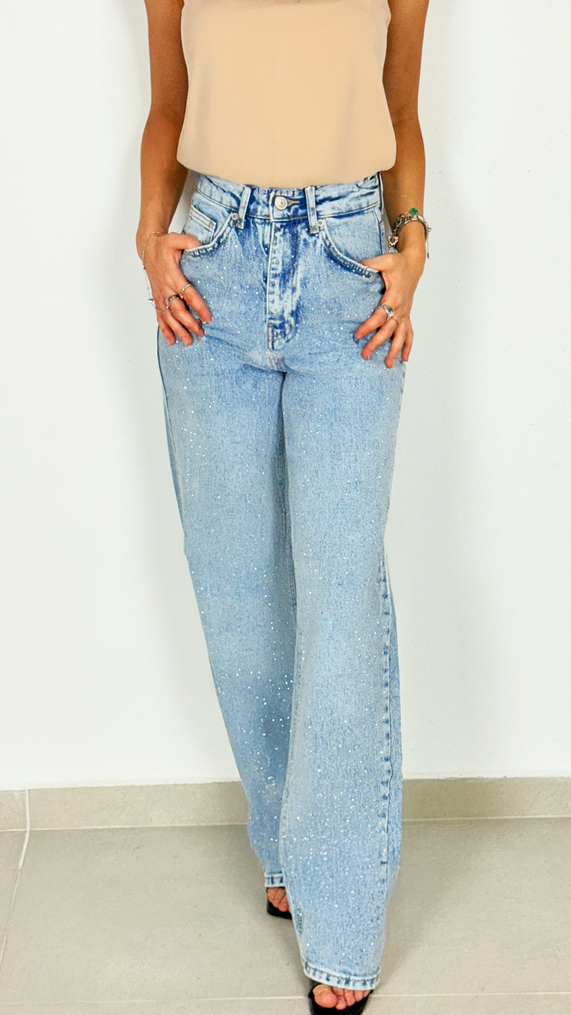 Taş Detaylı Palazzo Kot Pantolon